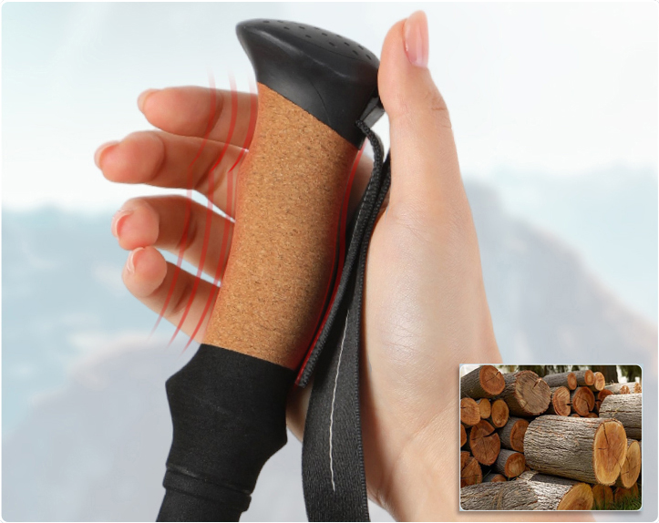 Le manche en fibre de carbone est léger mais extrêmement solide, réduisant la charge tout en offrant un soutien stable – parfait pour les longues randonnées.