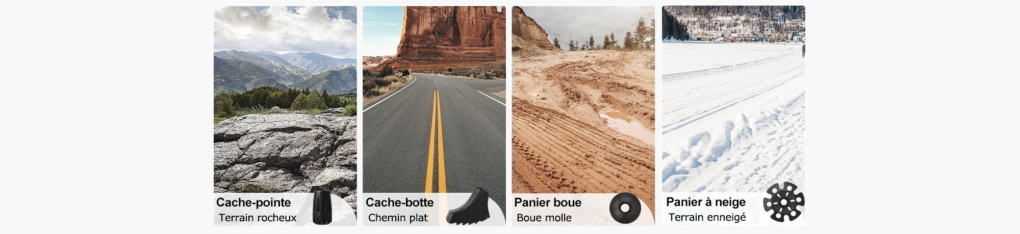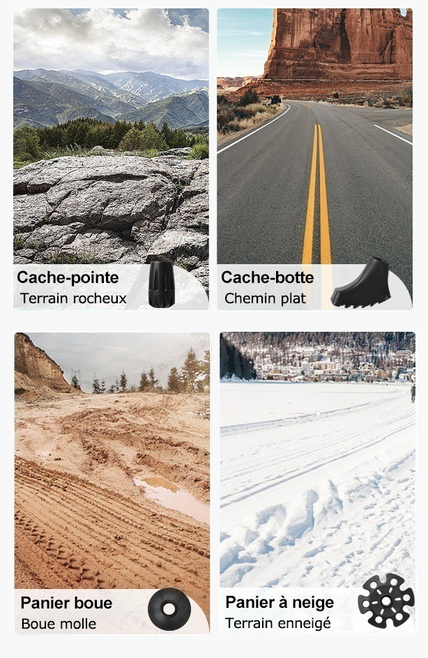 - Bâtons de randonnée 100 % en fibre de carbone.